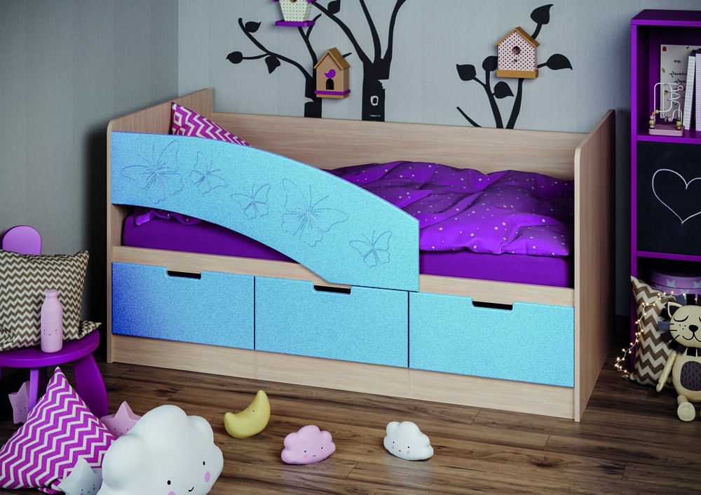 —Детская Кровать "Ириска-8" МДФ Бабочки (Ш-850 x В-850 x Д-1630/1830 мм)/Разные Цвета