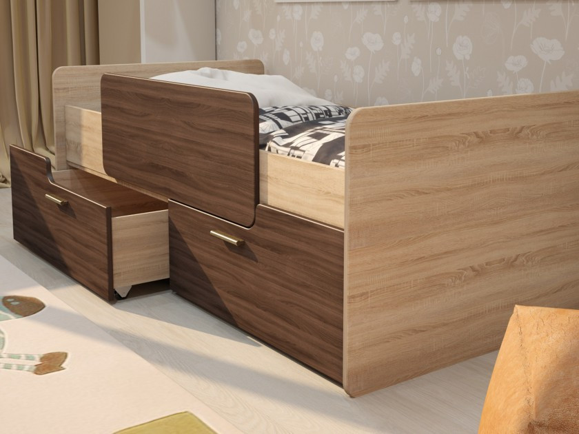 Купили сыну 1год и 8мес. Искали бюджетный вариант, эта модель шла со скидкой. Доставили уже через день. Доступная инструкция, собрали сами. Кровать добротная, очень вместительные ящики на колёсиках, легко выдвигаются. Матрас заказали здесь же, ортопедический Бемби(мне кажется немного жестковат, но это даже хорошо для спины). Ребёнку понравилась кровать.Покупкой довольны.