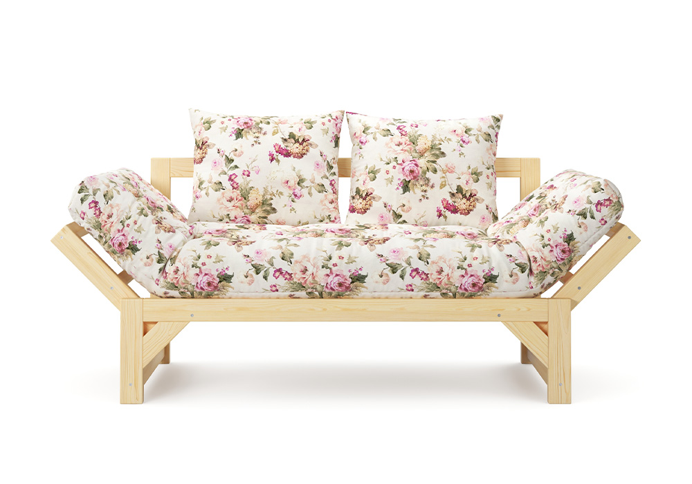 Максимальная нагрузка — 220кг. Ширина деревянной спинки 130 см. Приспинные подушки, представленные на фото, входят в комплект. Декоративные приобретаются отдельно. Диван продается без лакокрасочного покрытия, под самостоятельную покраску. Высота сиденья без матраса - 31 см, с матрасом 46 см.