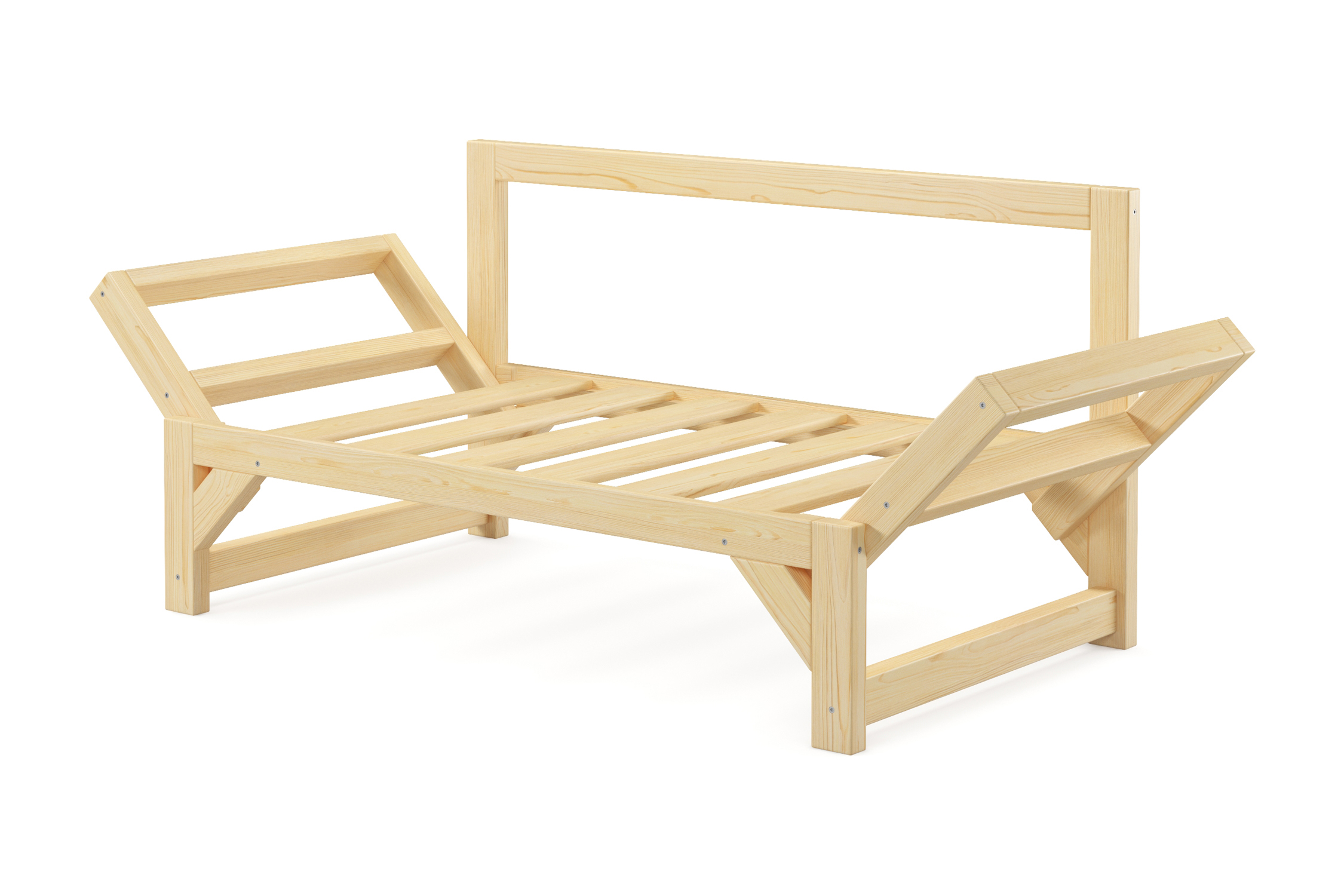 Максимальная нагрузка 220 кг. Ширина деревянной спинки 130 см. Приспинные подушки, представленные на фото, входят в комплект. Декоративные приобретаются отдельно. Диван продается без лакокрасочного покрытия, под самостоятельную покраску. Высота сиденья без матраса - 31 см, с матрасом 46 см.