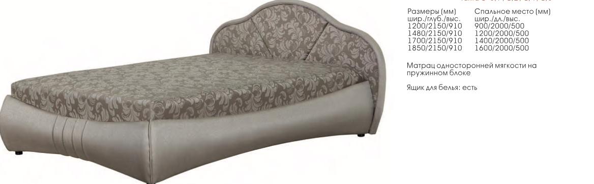 • Спальное Место: Ширина 900/1200/1400/1600 х Глубина 2000 х Высота 500 мм